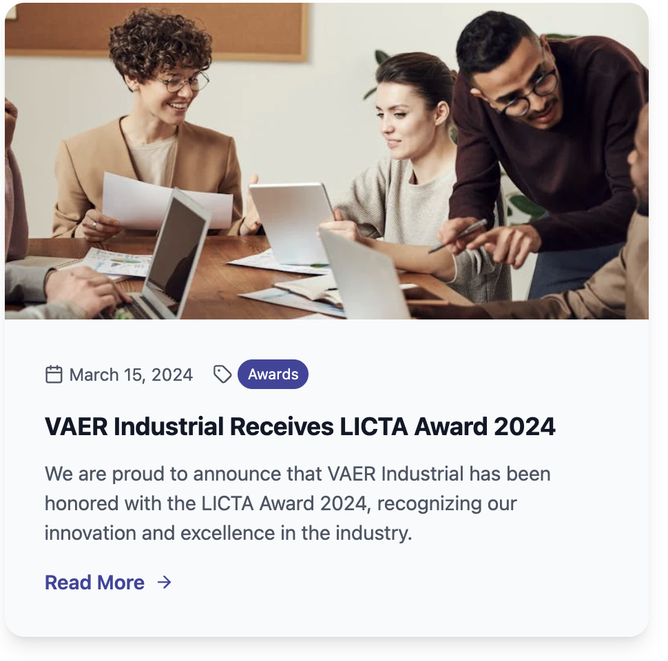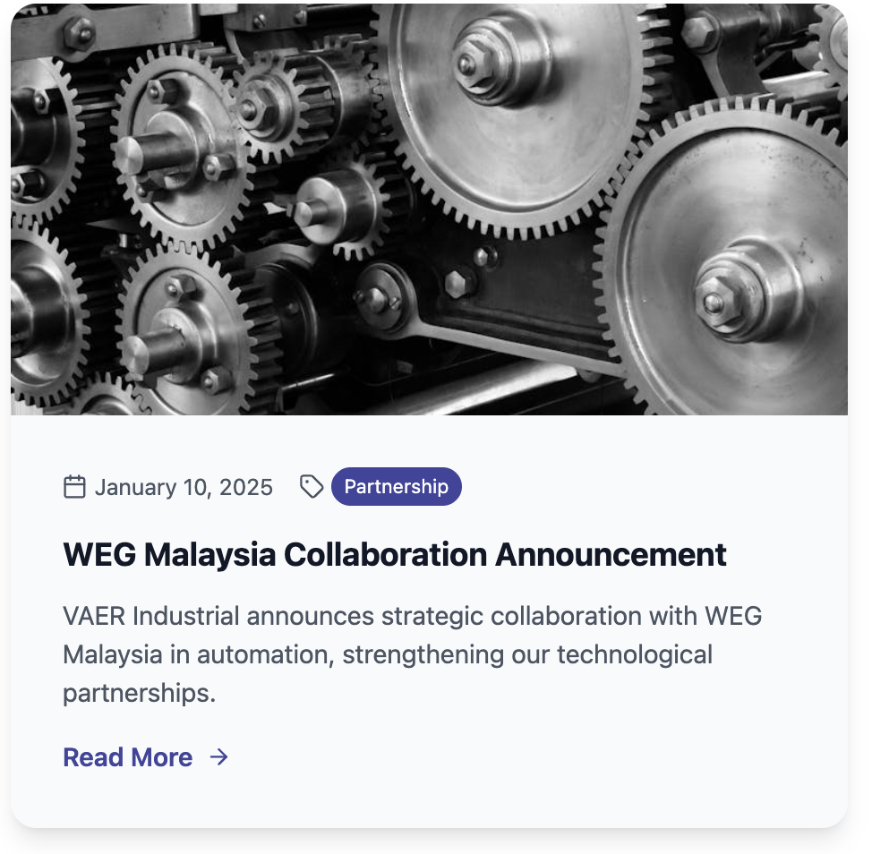 News & Updates Stay updated with the latest news, achievements, and developments from VAER Industrial and the M&E industry. Featured News Our most significant announcements and achievements that shape our journey in the industrial engineering sector.